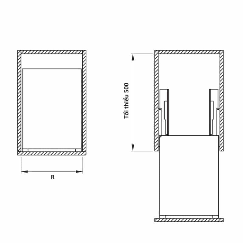 - Chiều sâu lọt lòng (S): Tối thiểu 500