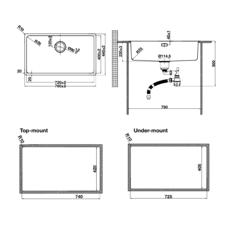 Chậu rửa bát inox 1 hố Hafele R25 HS25-SSN1S-760 567.24.483 Đen