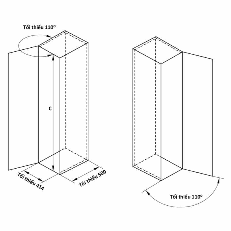 - Chiều cao lọt lòng (C): Tối thiểu 1950mm